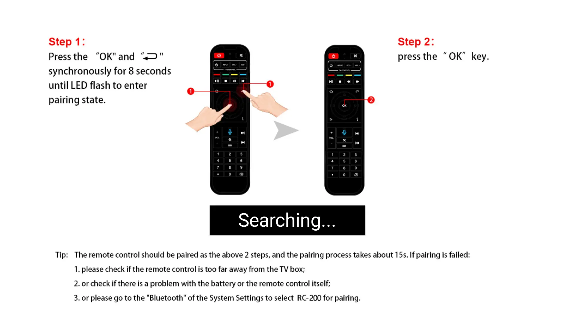 The remote control uses infrared (IR) by default to connect to the SuperBox. This means that the remote will need to be pointed directly at the SuperBox in order to control it. You can switch this to use Bluetooth which allows the remote to be pointing in any direction as long as you are within approximately 30 feet to the box. Bluetooth also enables voice functionality of the remote.