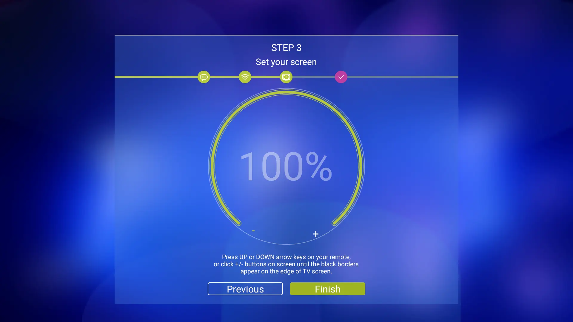 UpandDownarrow keys on your remote control to adjust the picture to the edge of your television screen. - When done, select